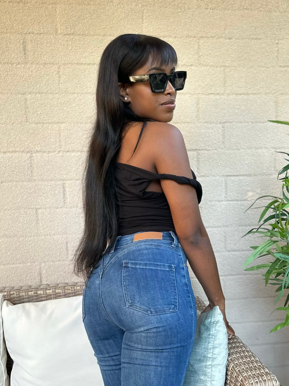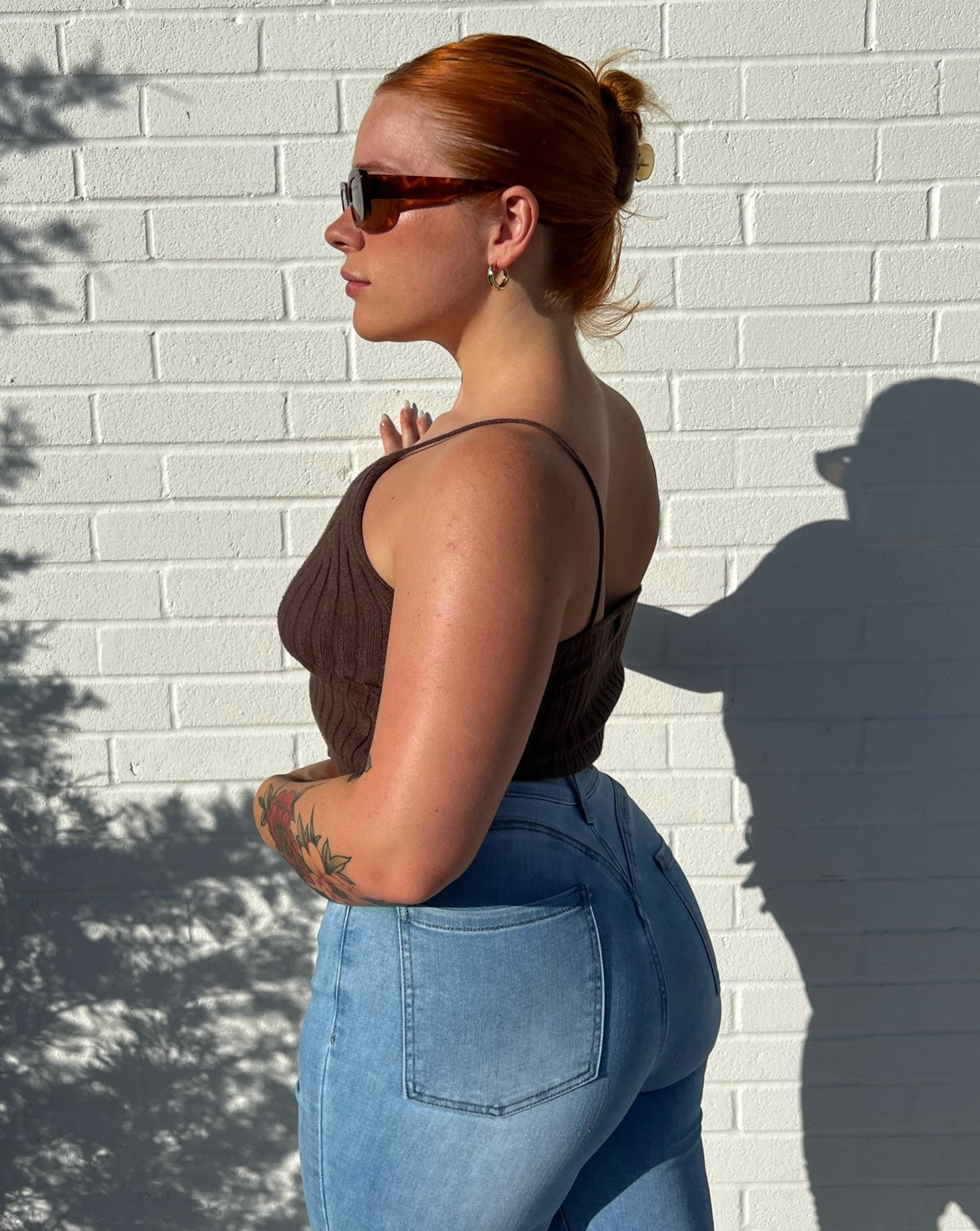 The BODI venyy ja tukee muotojasi. Kaunis taivaan sininen väri. Kangas on laadukas, joustava, pehmeä mutta kestävä. Farkkujen vyötäröllä on sisäänommeltu säädettävä kuminauha. Sweetheart takasauma on luotu kohottamaan muotoja. Materiaali ei löysty käytössä. Kunnon taskut ja valittavissa on kaksi pituutta.
